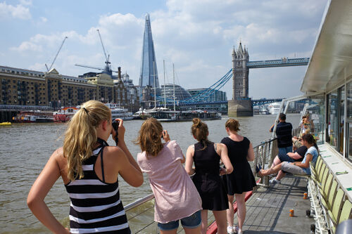 Der Bus bringt Sie zunächst nach Greenwich. Dort können Sie auf Wunsch das Royal Observatory mit dem Nullmeridian besuchen. Die Fahrt in die Stadt erfolgt dann auf dem »fließenden Motorway« – der Themse. Viele wichtige Londoner Bauwerke können entspannt vom Boot aus betrachtet und fotografiert werden. Die Themse-Fahrt wird für Sie und Ihre Schüler ein absolutes Highlight sein. Entsprechend der weiteren Tagesgestaltung bieten wir verschiedene Ziele mit dem Boot an: